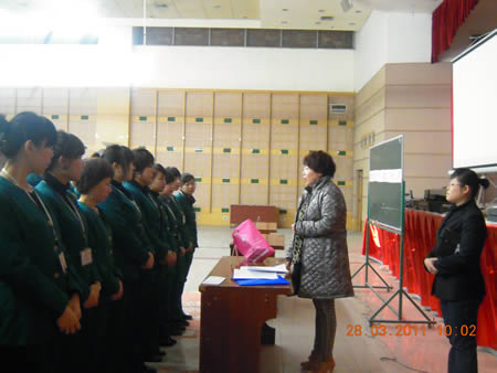 實(shí)操開(kāi)始了,大家非常有信心的向各位評(píng)委及同事做著自我介紹。