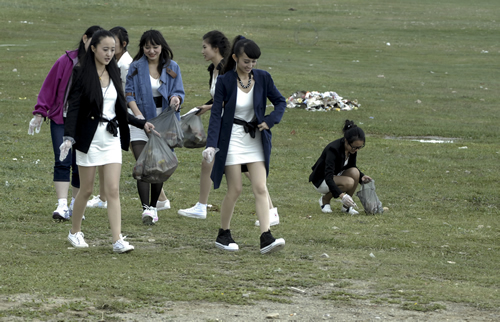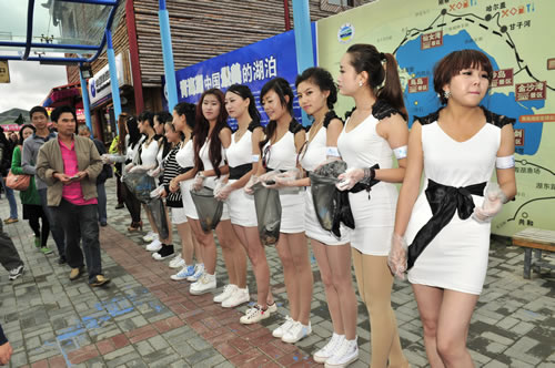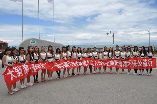 中午,一行到達(dá)青海湖畔。天高地闊的美景與靚麗的美女即刻構(gòu)筑成為一道精彩的風(fēng)景,隨行攝影師、攝像師即刻拿起機(jī)器留下許多難得的好畫(huà)面。接下來(lái)的環(huán)保實(shí)踐與環(huán)保意識(shí)推廣為眾多選手留下了深刻的印象,許多選手紛紛表示希望通過(guò)自己的行動(dòng)提高社會(huì)環(huán)保意識(shí),讓跟多人參與到保護(hù)青海湖環(huán)境中來(lái)。