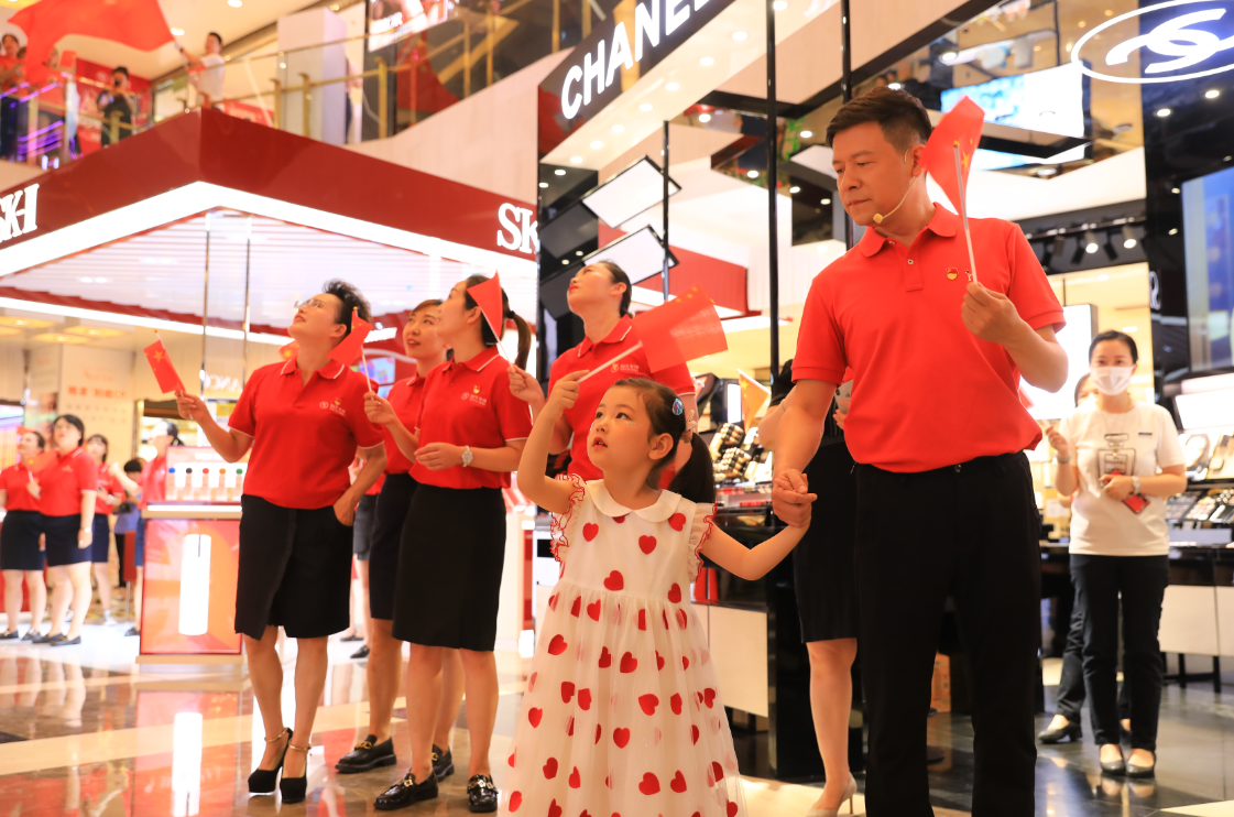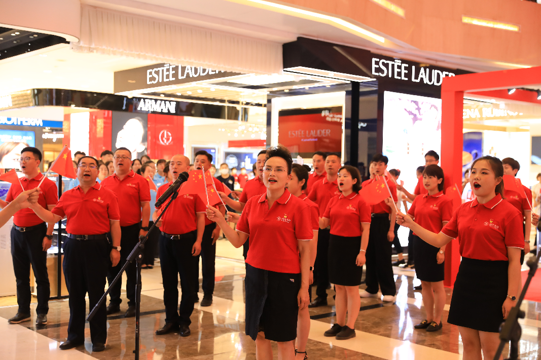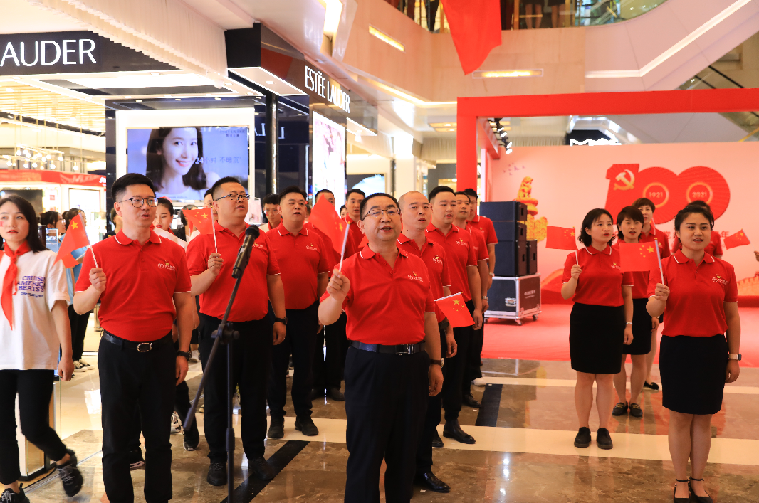 下午14時(shí),國芳集團(tuán)慶祝中國共產(chǎn)黨成立100周年紅歌快閃活動(dòng)在蘭州國芳百貨廣場店一樓中廳隆重舉行。國芳集團(tuán)全體黨員及員工代表參與其中,大家用歌聲表達(dá)對黨的無限忠誠和美好祝福。