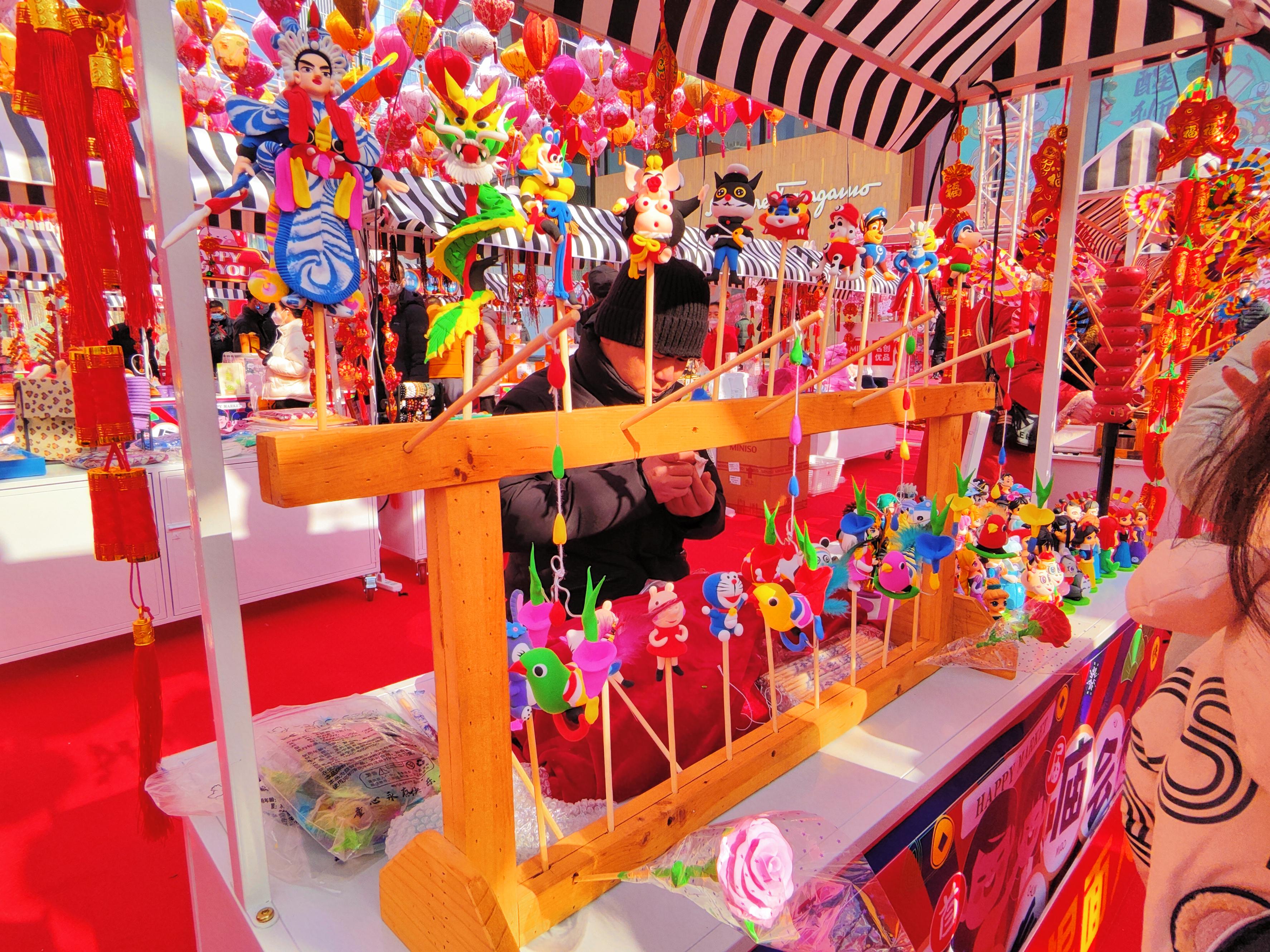 今天的喜慶,綿延著千百年傳統(tǒng)文化積淀的醇厚,綻放著文化創(chuàng)意與時(shí)俱進(jìn)的鮮活,活動(dòng)現(xiàn)場(chǎng)遍布著中華傳統(tǒng)文化的元素。手寫(xiě)春聯(lián),翰墨飄香;巧手剪紙,剪藝傳情;草編藝術(shù),指尖乾坤;嘴吹糖人,栩栩如生;塑捏彩泥,惟妙惟肖;手繪糖畫(huà),活靈活現(xiàn)。