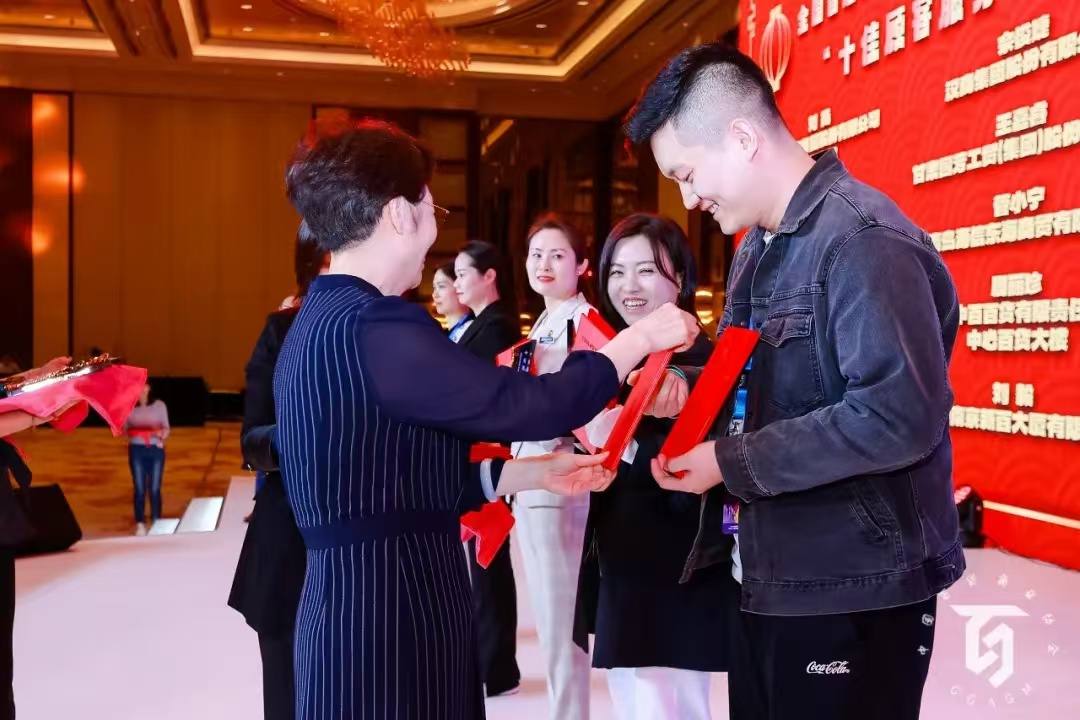 王嘉瑞作為國芳集團代表進入技能大賽活動決賽,通過現(xiàn)場操作和演示介紹,充分展示出獨特且具有優(yōu)勢的業(yè)務(wù)技能和服務(wù)風(fēng)采,最終榮獲“全國十佳導(dǎo)購”榮譽。